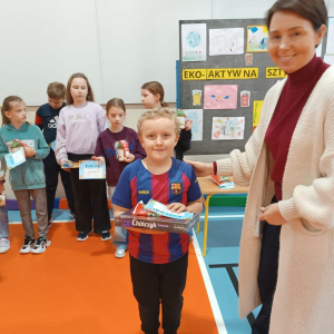 Wszyscy uczestnicy konkursów zostali nagrodzeni upominkami wręczonymi przez panią wicedyrektor Agnieszkę Pierzchalską. Serdecznie dziękujemy za udział w konkursach oraz gratulujemy zaangażowania i kreatywności.