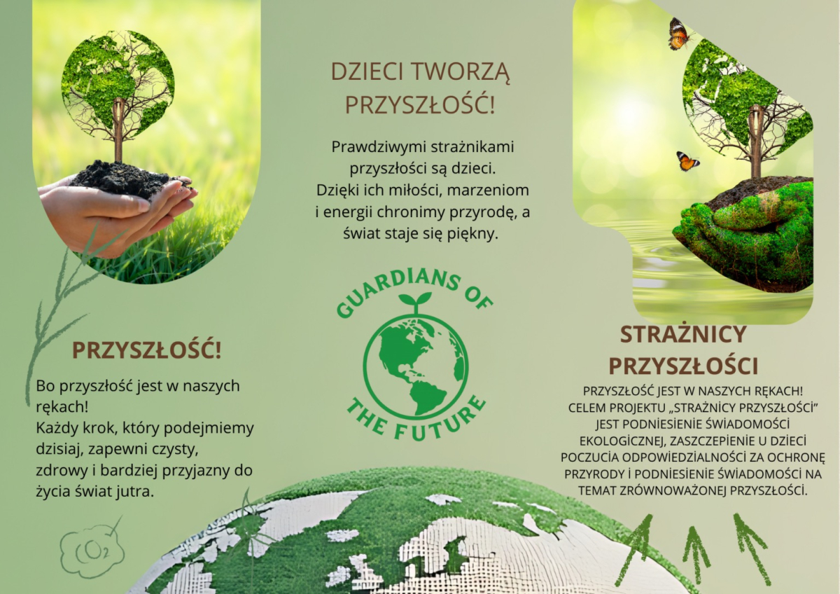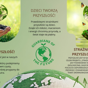 Opis: („Strażnicy Przyszłości”). Projekt realizowany jest przez Magdalenę Adamczyk-Nunn w klasie III a.